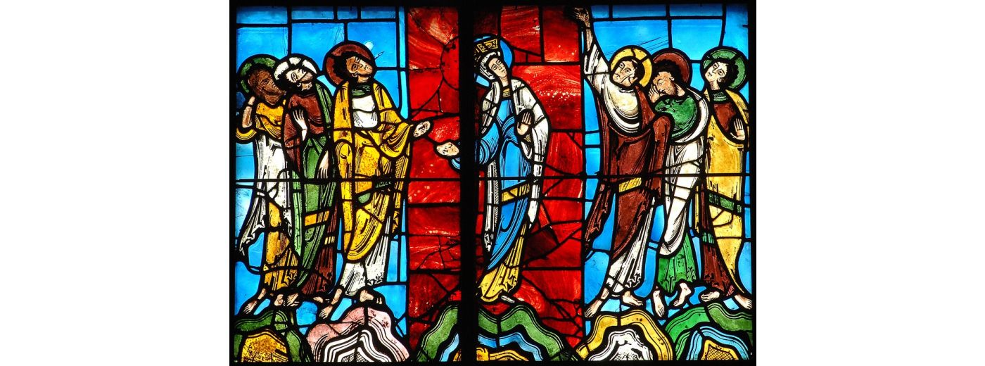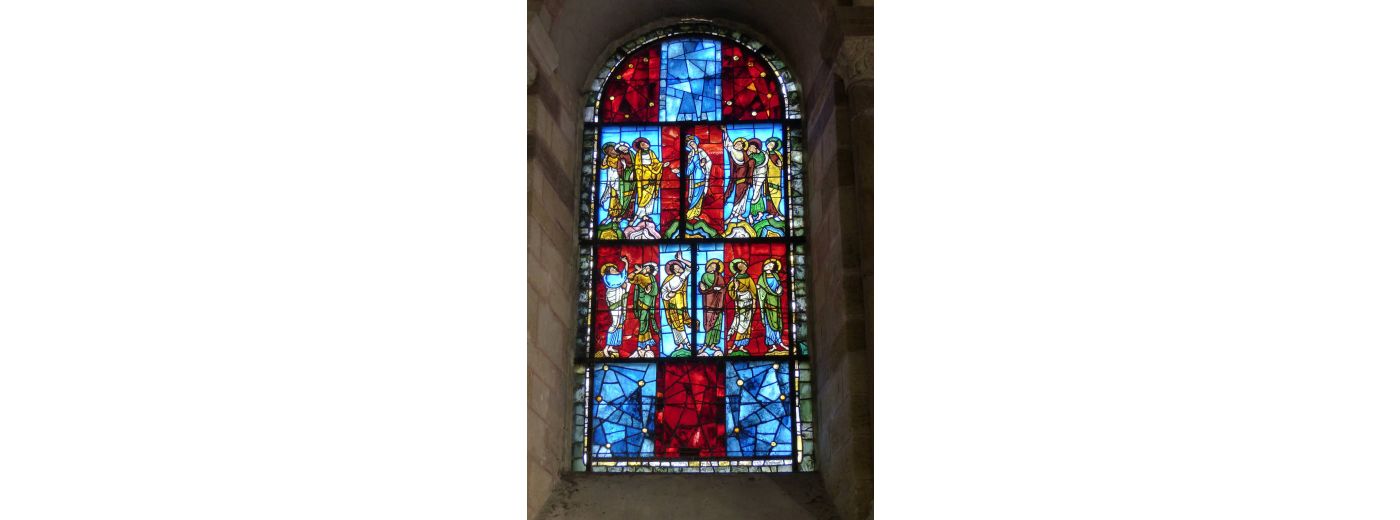 Saint-Julian cathedral has, with Notre-Dame de Chartres, the finest collection of medieval stained glass in the world. The Ascension window, which is located in the lower left side of the nave is the oldest stained glass (end XIth Century) still in place in a religious building .  Abstract panels were created by Max Ingrand in 1956.
