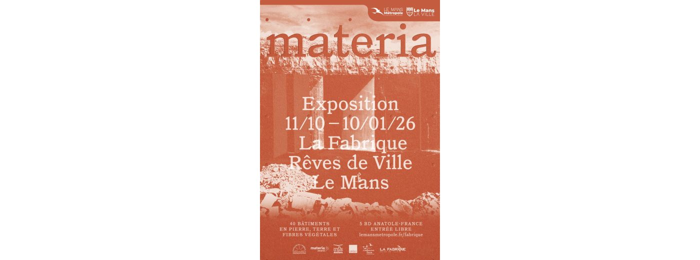 L’exposition Materia s’inscrit dans la continuité des deux éditions Fibra architectures (2019) et TerraFibra (2021). Elle est dédiée aux architectures contemporaines en terre, pierre et fibres végétales et met en valeur les propriétés esthétiques, avantages constructifs et bénéfices environnementaux d’écoconstructions sélectionnées dans le cadre du prix materia award. Materia reflète la volonté de mettre en lumière des projets de réhabilitation exemplaires, en soulignant la complémentarité des matières. Elle vise une reconnaissance de ces bâtiments par la profession comme par le grand public, soulignant le courage des maîtres d’ouvrage qui ont fait le choix de ces matériaux, la créativité des concepteurs et le savoir-faire des artisans et entrepreneurs.