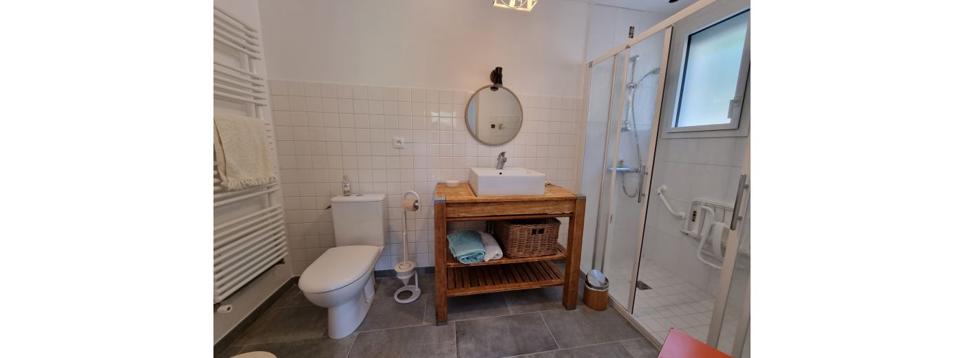 Chaque chambre au rez-de-chaussée dispose de son entrée et de sa terrasse bois privatives, de sa salle d'eau et de ses WC.
