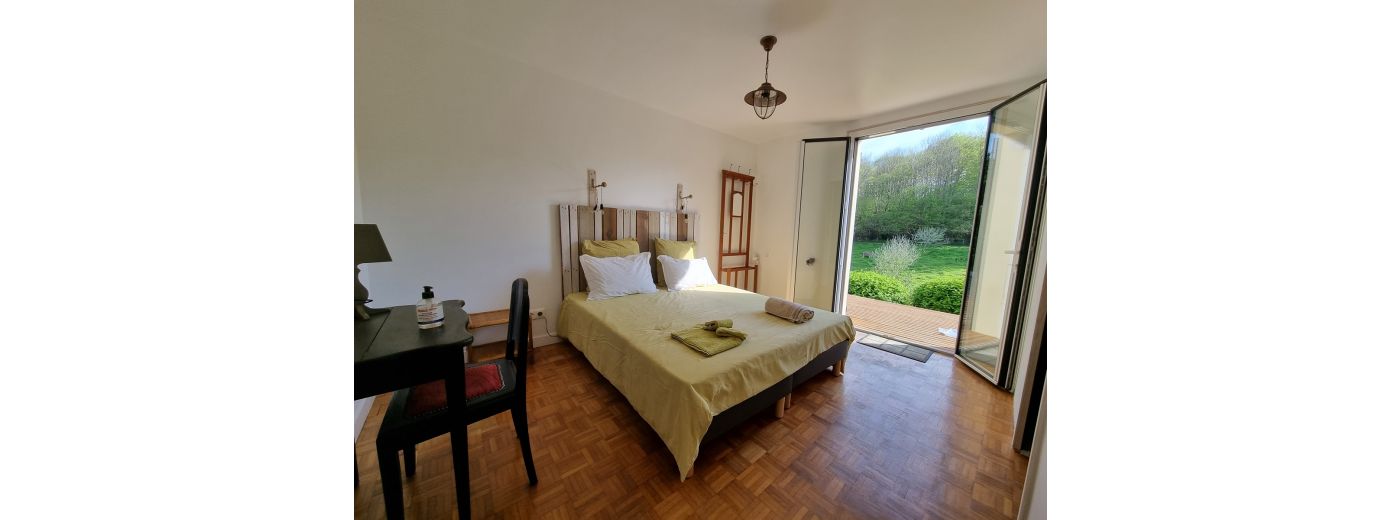 La maison d'hôtes est située dans un lieu calme en pleine nature, dans un environnement arboré d'1.5 ha.