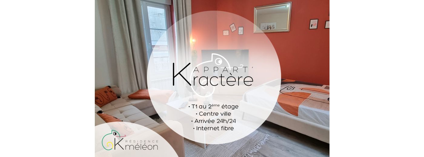 N’hésitez pas à venir profiter de ces appartements déKorés sur des thèmes différents et pensés pour vous offrir des séjours exceptionnels : l’appart k-Ctus, l’appart K-aractère, l’appart K-shmire, l’appart K-bane, l’appart K-ouleur, l’appart K-psule et l’appart K-za. A chaque caméléon son appart !
