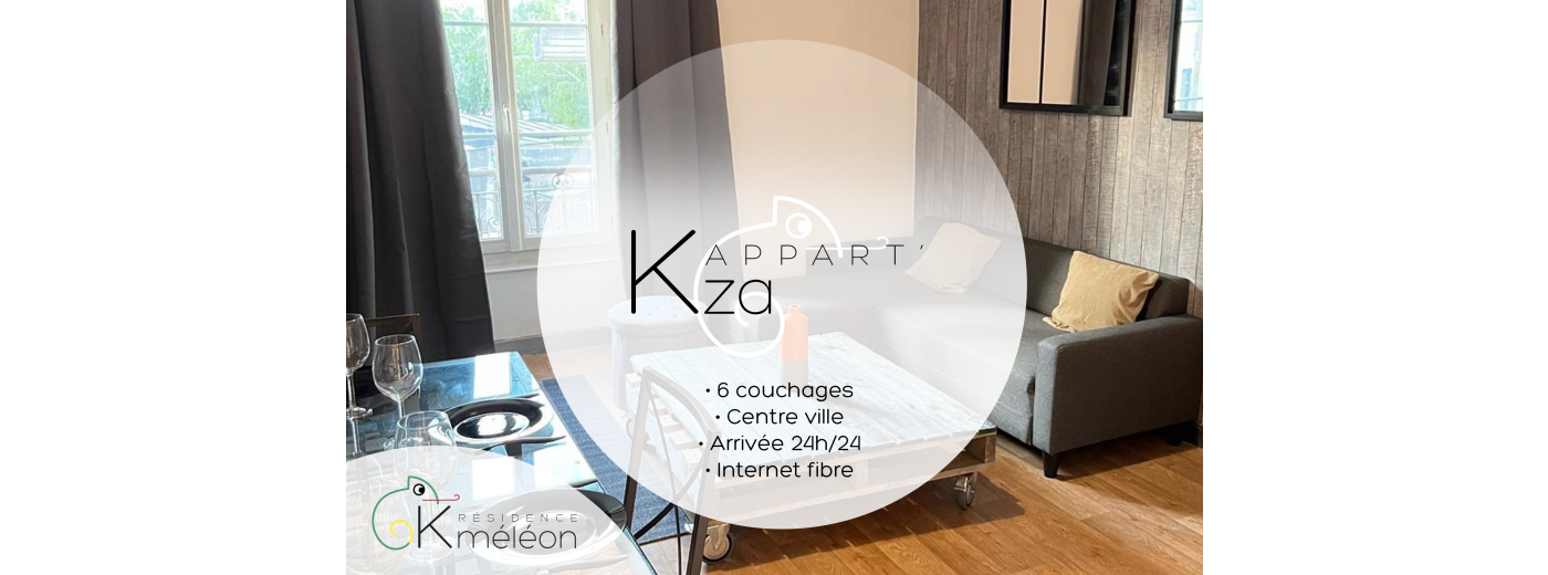Nous vous aKueillerons dans La Résidence K-méléon. C’est un immeuble situé en plein centre-ville du Mans, proposant 7 apparts-hôtel entièrement rénovés et éKipés. Nous sommes très heureux de vous y aKueillir !