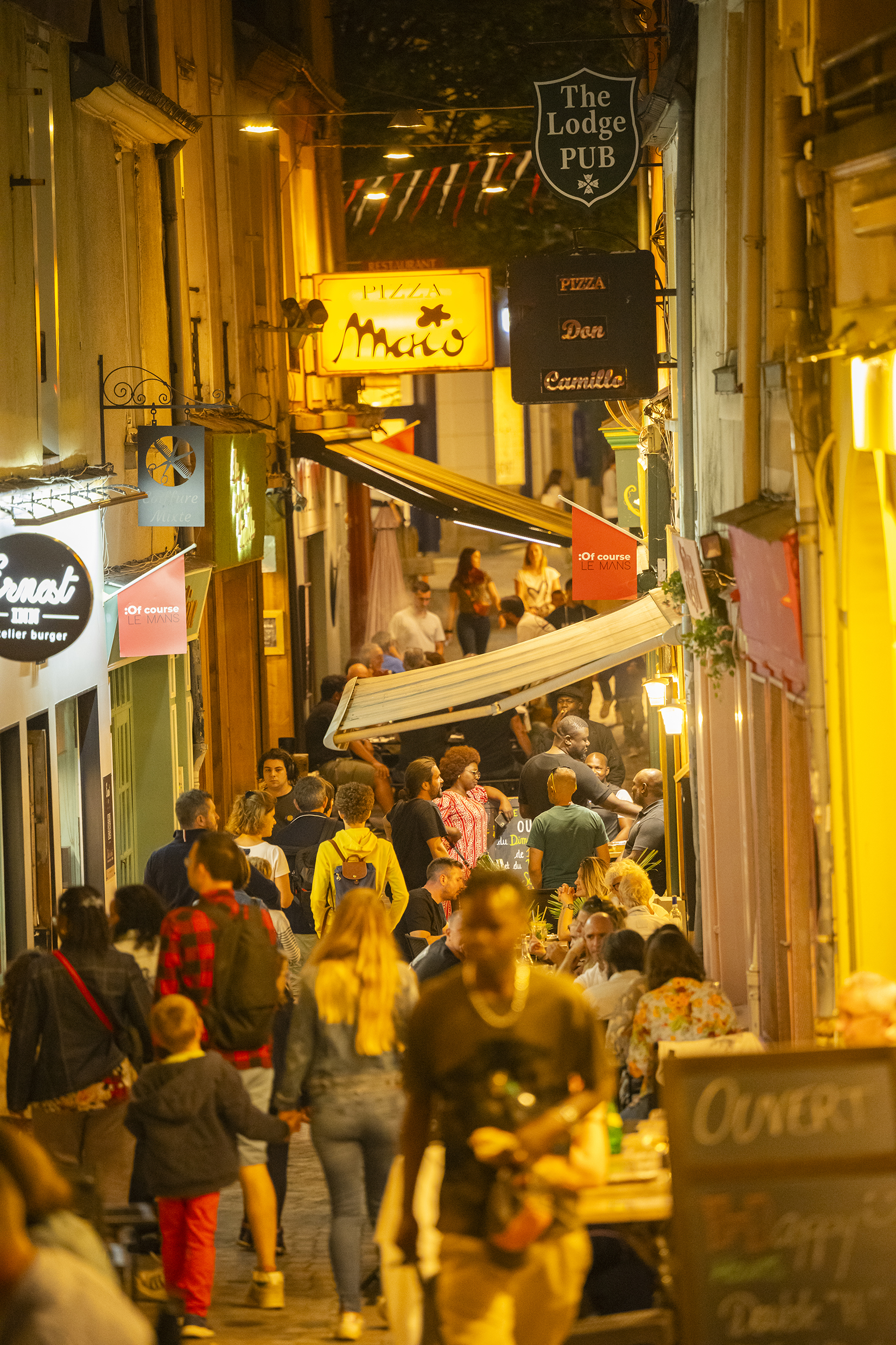 En centre-ville, tout est prévu pour passer une bonne soirée entre amis. De l'afterwork à l'apéritif dans un bar à vin, du restaurant classique au plus original, le choix est vaste ! Après avoir dîné du côté de la Cité Plantagenêt, ou en centre-ville, pourquoi ne pas se faire un cinéma ou une pièce de théâtre dans le Centre culturel des Quinconces ? La fête se prolonge dans les nombreux bars du centre-ville, quartier Saint-Nicolas, place de la Sirène, rue des ponts-neufs ou encore autour de la Place de la République, rue du Port, ou rue du Docteur Leroy.